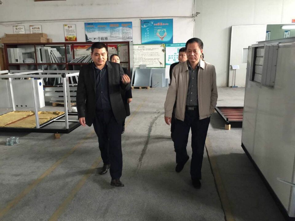 在贵宾接待室,欧博集团董事长詹总向胡书记介绍了公司的概况、运作模式、发展历程以及目前江西欧博工业园的战略定位等情况,随后在多功能会议室一起观看了公司宣传视频并陪同参观了生产车间、装配车间、盘管车间、钣金车间等。在实地参观考察后,胡书记对欧博空调的发展给予了充分的肯定和高度评价,并且对公司的发展提出了宝贵的建议,希望欧博空调不断自我挑战,不断创新,追求卓越,去实现更高的目标。