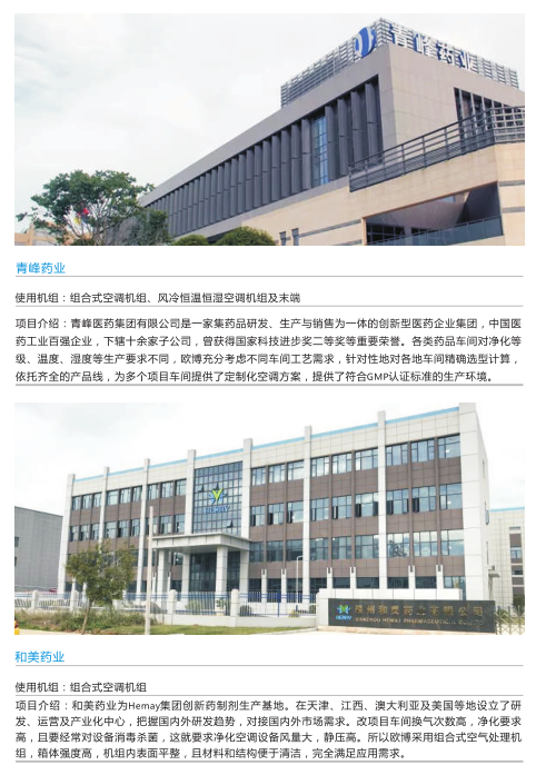 多年来欧博深耕于生物制药空气净化领域,对GMP、GSP有深刻的理解,从客户制定URS开始,欧博都会全程参与其中,为客户提供多元化的空调解决方案,并及时为客户提供相应的支持,协助客户做好各项验证工作,直至客户顺利完成GMP。